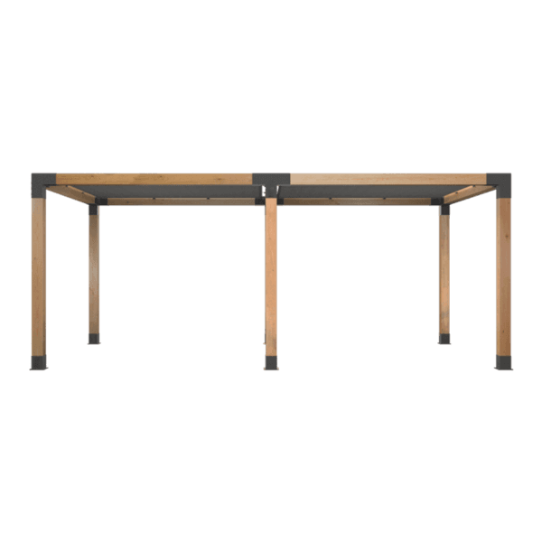 Bu özel pergole seti, 9×9 cm ölçülerinde kurutulmuş ve verniklenmiş çam ağacı kalaslar ile üretilmiştir. Ahşaplar, uzun ömürlü kullanım ve dış hava koşullarına karşı dayanıklılık sağlar. Yapısal sağlamlığı ise 2 mm kalınlığındaki dayanıklı metal braketler sayesinde elde edilmektedir.